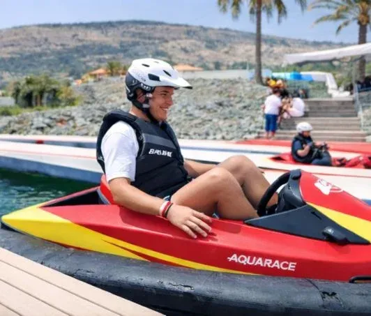 החוויה באקווה רייס מתחילה ברגע שאתם לוחצים על הגז ולא עוצרת גם כשהשמש שוקעת. זהו מרוץ קארטינג ייחודי על מסלול צף שמשלב את המהירות וההתרגשות של מרוץ עם תחושת החופש של המים. הסירות המיוחדות מאפשרות לכם לשלוט בכל סיבוב וליהנות מחוויית אדרנלין טהורה, והפעילות נמשכת גם בשעות הערב והלילה – מהבוקר ועד השעות המאוחרות תוכלו להתחרות, להרגיש את הבריזה ולהבין כמה כיף זה לנהוג על פני המים. זו הזדמנות לחוות את הקארטינג באופן חדש וליהנות מהרפתקה ימית שמשאירה טעם של עוד.